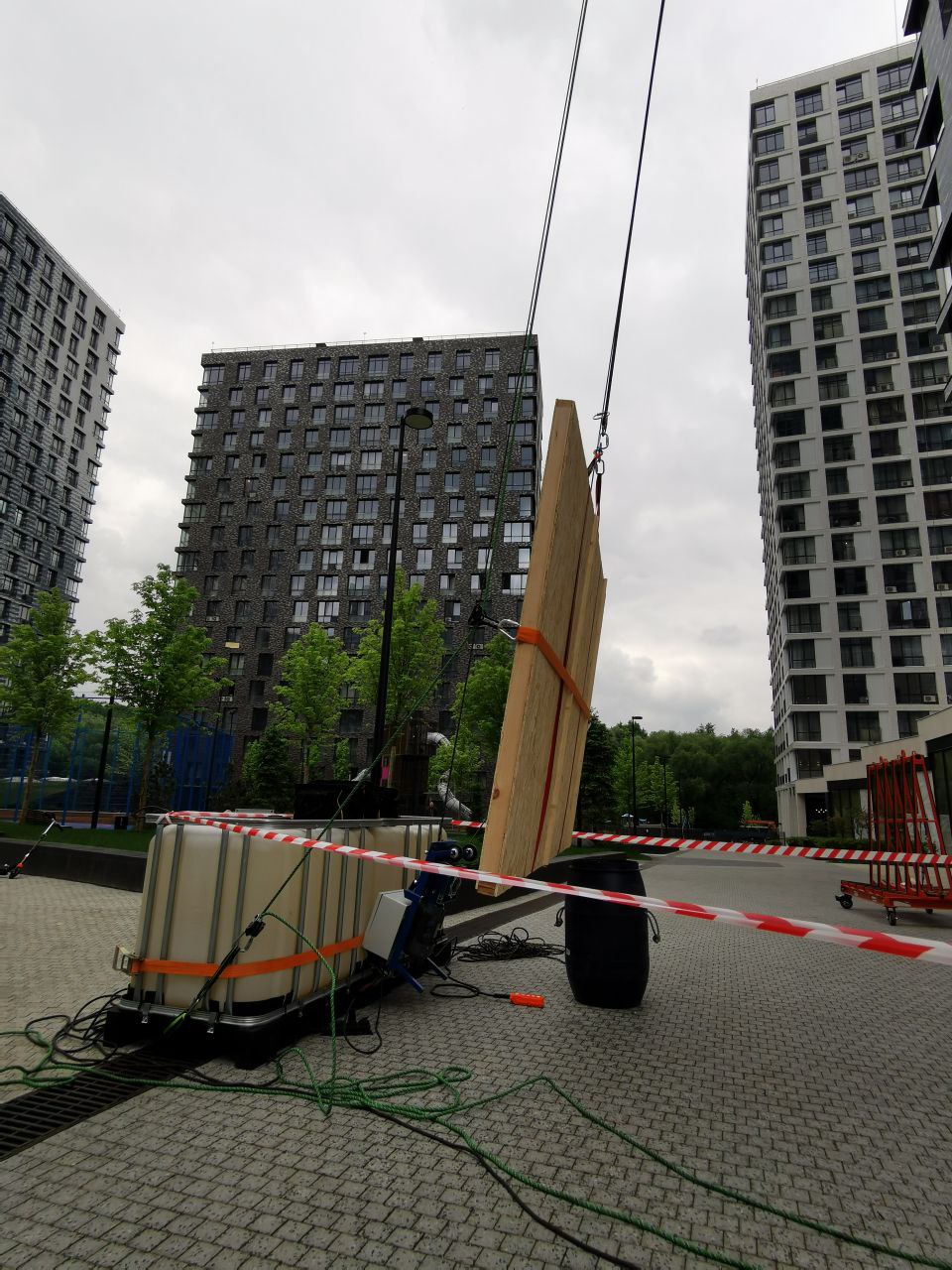 – Такелаж: применялись мягкие стропы, траверсы и элементы защиты кромок плит для предотвращения повреждений.